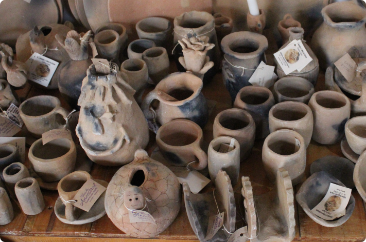 El arte de moldear el barro y elaborar manualmente productos hechos de arcilla, es herencia de los guanes; entre sus elaboraciones se encuentran las vasijas, tiestos, ollas y utensilios a mano. La alfarería artesanal constituye un trabajo manual y creativo, que aplica técnicas de modelado y moldeado para transformar las arcillas en objetos utilitarios y porosos.